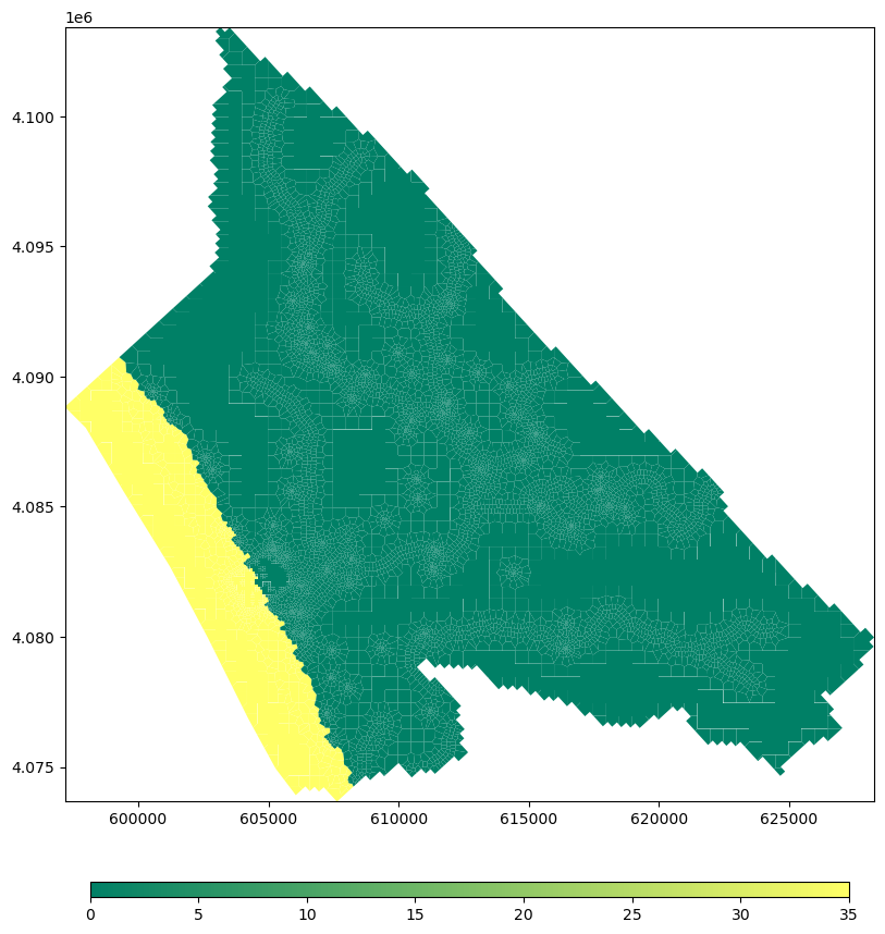 # plot_array = mapview.plot_array(tempConc,masked_values=[-1e+30], cmap=plt.cm.summer)