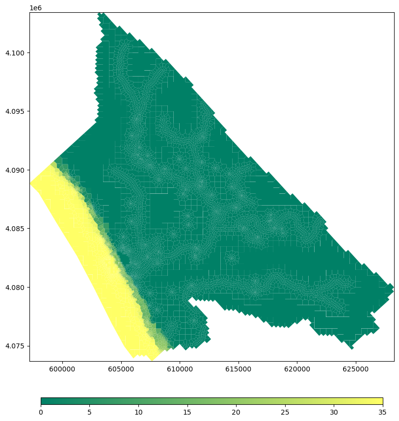 /This is an applied example of seawater intrusion modeling using MODFLOW6 and the BUY package. The model is fully geospatial and works with ESRI Shapefiles and rasters (*.tif) as inputs. The model grid is based on Voronoi meshes generated with the Python package mf6Voronoi. Since there are so many concepts involved in the conceptualization of a variable density groundwater flow simulation with MODFLOW6 and Flopy, these cases use a code template from mf6Voronoi that simplifies the model construction and simulation. The applied case also gives us the chance to discuss the main parts of model setup.