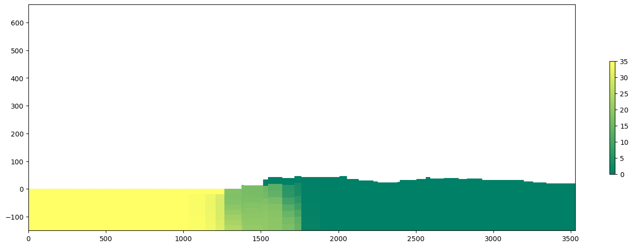 strtArray = crossview.plot_array(tempConc, masked_values=[1e30], cmap=plt.cm.summer)